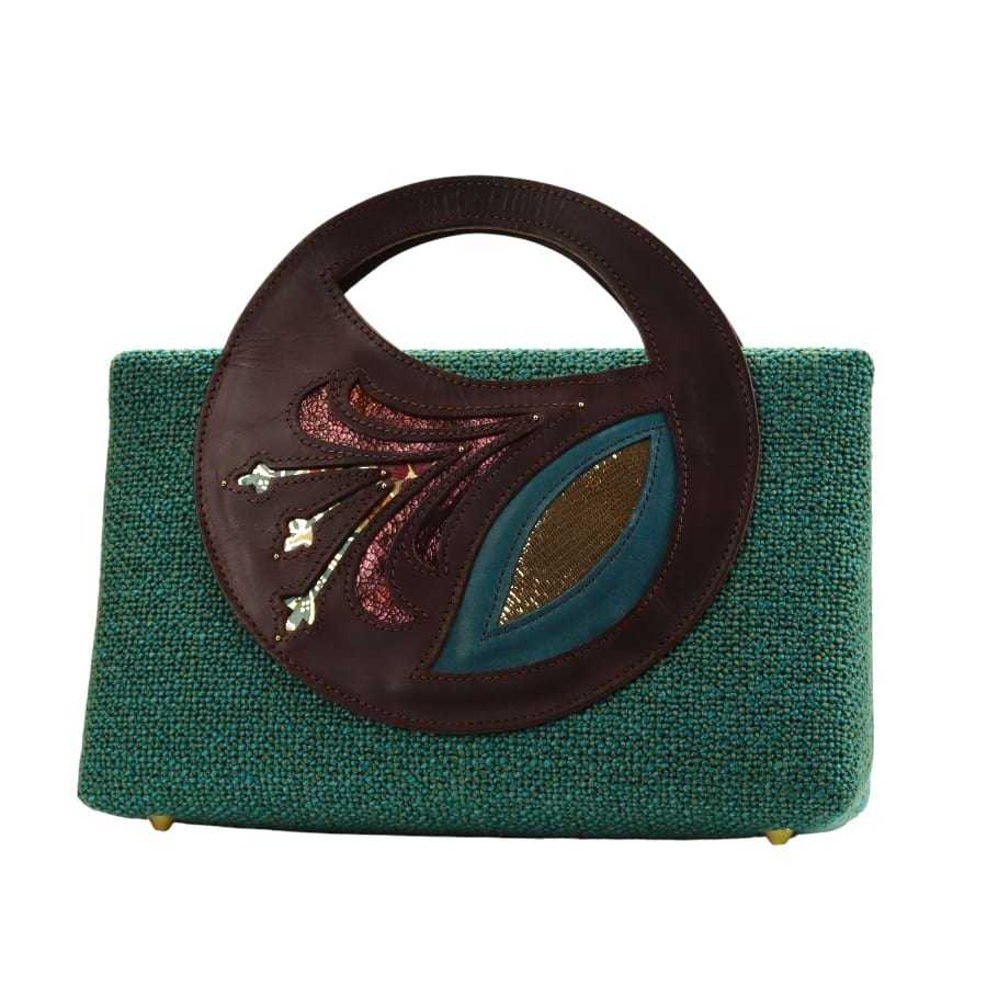 Handmade by a skilled artisan, this handbag is more that an accessory - it is a celebration of creativity and dedication to craftsmanship. Handcrafted by artist Libby Mitchell in her South Carolina studio, this one of a kind handbag features an intricately crafted leather handle design, making it a true statement piece for any art or fashion enthusiast.